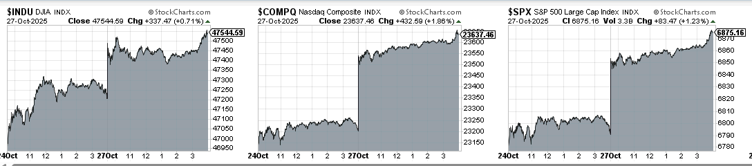 El SPX superó el rango de consolidación creado tras el mini-crash del 10 de octubre. El AVWAP del 1 de agosto aguantó como soporte. La media de 50 días también.