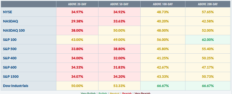 El Dow Jones se salva con dignidad (66,7% > 100D/200D), pero mid y small caps siguen bajo presión (32% > 50D en S&P 400/600).