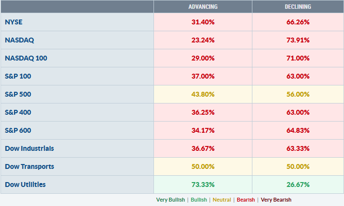Solo 33,8% de las compañías del S&P 500 están por encima de su media de 50 días.
