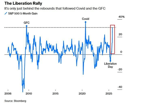 El S&P 500 acumula +31% en 5 meses (el mayor rally desde la recuperación post COVID) y marca 21 máximos en lo que va de año.