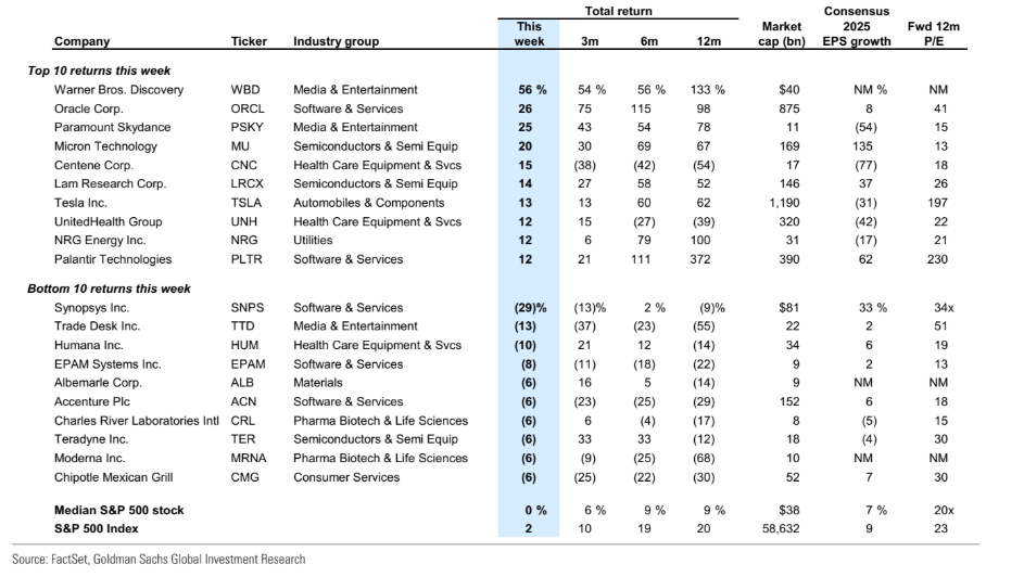 Patrón común: tecnología y media dominan las subidas, especialmente cuando hay narrativa de IA y cloud. Tesla vuelve a reflejar apetito por growth de beta alta.