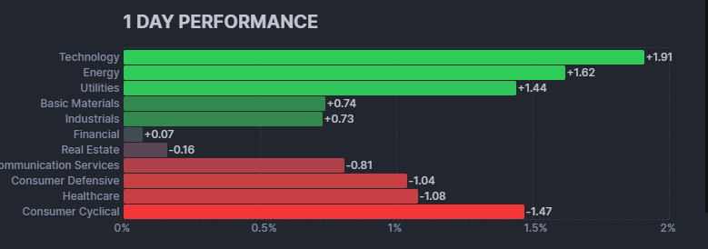 Por sectores, destacó el comportamiento positivo de tecnología y energía (impulsada por el petróleo, que subió a $63,73), mientras que salud y consumo discrecional fueron los más débiles. En derivados, se notó un posicionamiento más optimista en tecnología, con mayor demanda de calls en el Nasdaq (QQQ).