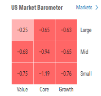 S&P 500 -0,5%, Nasdaq -0,4%, Russell -1%, Dow -0,38%