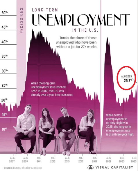 A esto hay que sumarle, el desempleo de larga duración, definido como estar desempleado durante 27 semanas o más, se encuentra en el nivel más alto en cuatro años.
