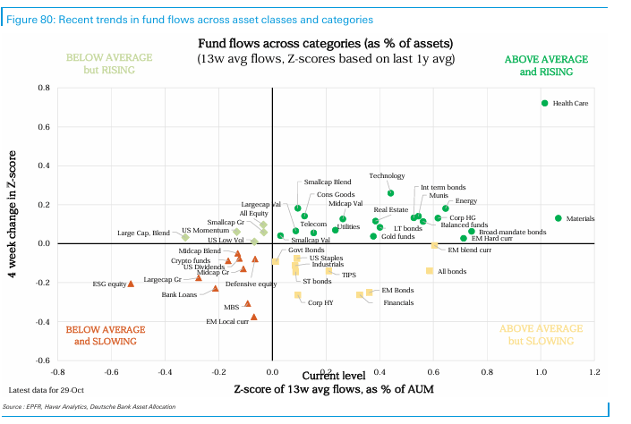Tras acumular +59 bn USD en entradas en los últimos cuatro meses, el oro experimentó una fuerte salida semanal de -7.5 bn USD, señal de que algunos especuladores están tomando beneficio.